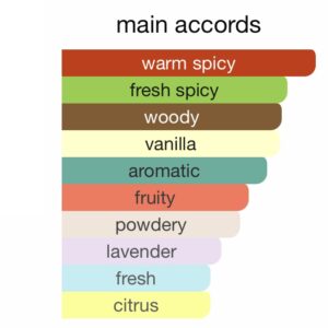 Base notes: vanilla, cardamom, sandalwood, pepper